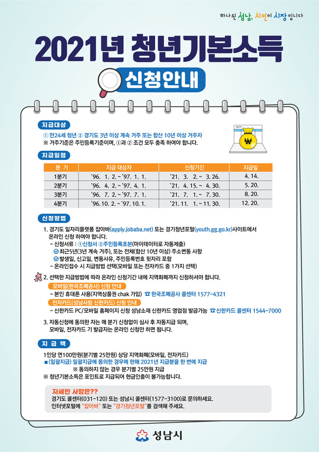 사진/청년정책과-성남시 청년기본소득 지급 신청 안내문(성남시 제공)