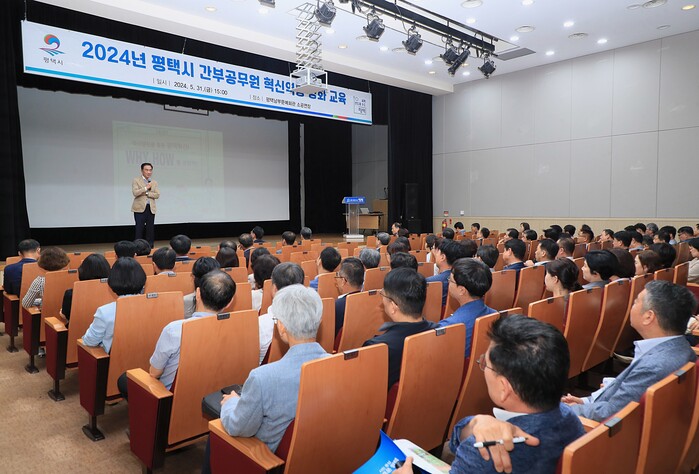 평택시(시장 정장선)는 지난달 31일 평택남부문화예술회관 소공연장에서 5급 이상 간부공무원 100여 명을 대상으로 ‘간부공무원 혁신역량 강화 교육’을 실시했다.