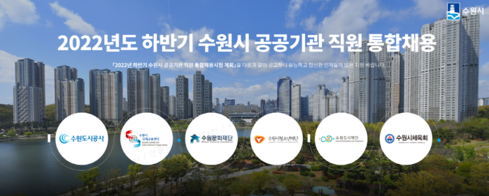 수원시가 ‘2022년 하반기 수원시 공공기관 직원 통합채용’으로 6개 기관에서 총 22명을 선발한다.