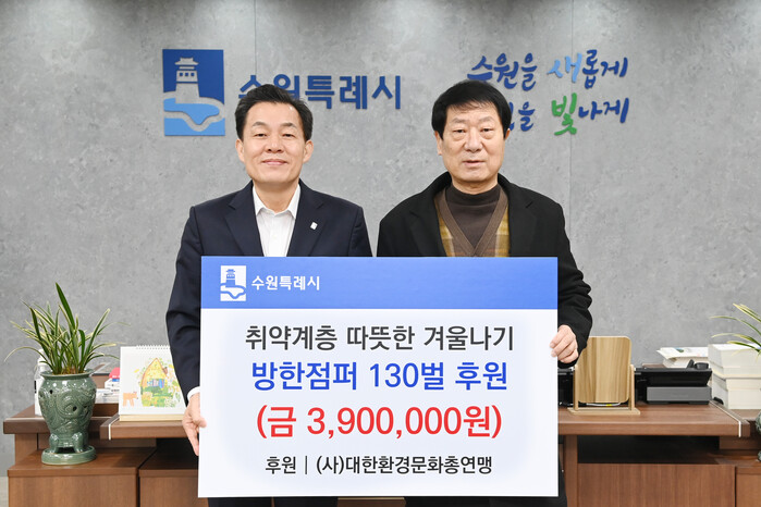 이재준 수원시장은 “대한환경문화총연맹의 후원이 추운 겨울이 더 힘겨운 이웃들에게 온기로 전해져 큰 힘이 되고 있다”며 “보내주신 따뜻한 마음 잘 전달하겠다”고 말했다.