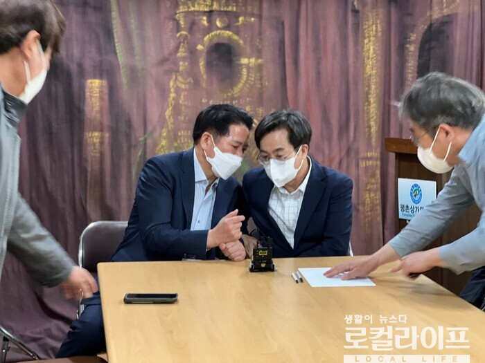 5일, 최대호 예비후보는 자신의 페이스북을 통해 “평촌역 상가연합회 관계자들, 김동연 경기도지사 후보, 민병덕 국회의원과 현안사항을 함께 나누었다”고 전했다.