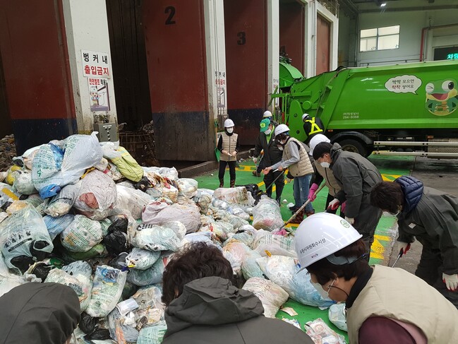 22일에는 파장·율천·정자1동 주민들과 주민지원협의체 주민들이 반입된 종량제 봉투를 뜯어, 기준에 못 미치는 쓰레기가 있는 지 확인했다.
