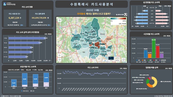 사진/수원시 빅데이터포털 시각화 화면, 수원시 카드사용현황(수원시 제공)