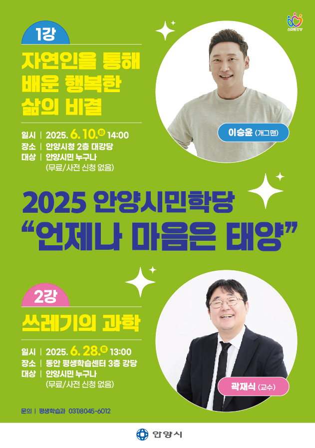 ‘2025년 안양시민학당’이 오는 10일 오후 2시 안양시청 대강당에서 첫 강연을 시작한다.