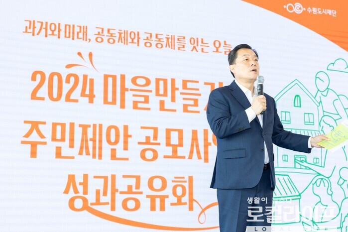 | ▲ 이재준 수원특례시장이 ‘2024 마을만들기 주민제안 공모사업 성과공유회’에 참석해 인사말을 하고 있다. (사진출처=이재준 페이스북) |