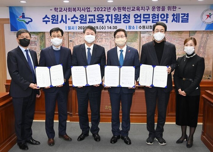 [로컬라이프] 송준형 기자 = 염태영 수원시장은 19일, 우리시는 학교사회복지사를 지원하는 업무협약을 수원교육지원청과 맺었다며, 올해로 12년째라고 말했다
