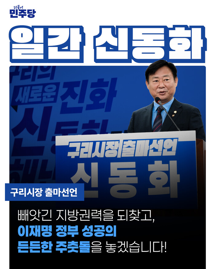 이와 관련해 신 의장은 이날 자신의 페이스북을 통해 신동화는 확실한 원팀 라인으로 빼앗긴 지방권력을 되찾고, 이재명 정부 성공의 든든한 주춧돌이 되겠다고 밝혔다.