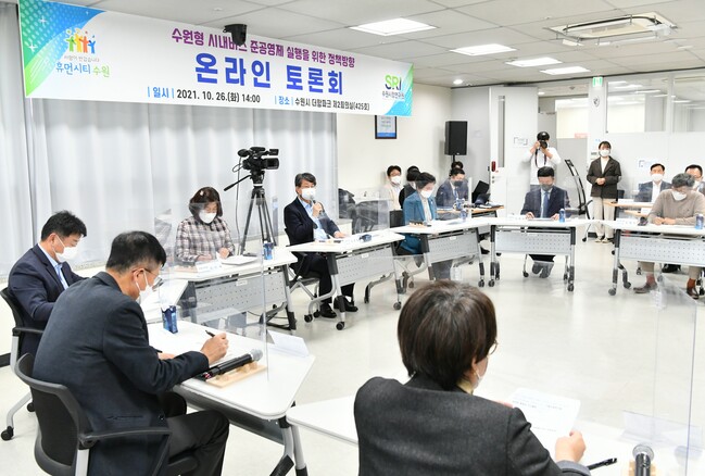 수원시는 26일 더함파크에서 대면·비대면 병행 방식으로 ‘수원형 시내버스 준공영제 실행을 위한 정책방향 온라인 토론회’를 열고, 수원시가 검토하고 있는 시내버스 준공영제가 나아가야 할 방향을 논의했다.