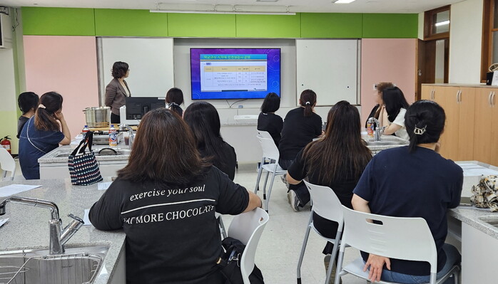 사진/수원시학교급식지원센터가 ‘2024년 찾아가는 학부모 식생활 교육’을 하고 있다.(사진제공=수원시)