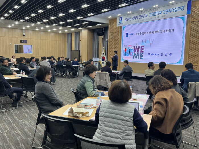 사진/수원시가 지난 19일 5급 공무원을 대상으로 ‘고위관리자 인권리더십 과정’을 진행하고 있다.(사진제공=수원시)