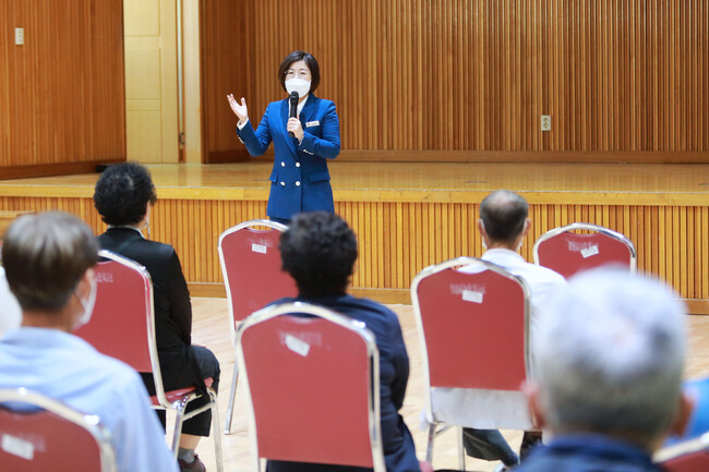 김보라 안성시장은 지난 24일 안성시노인복지관에서 수행하는 「노노케어」 노인일자리 직무교육 현장을 방문해 참여 어르신들을 격려했다.
