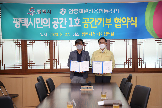 [로컬라이프] 평택시(시장 정장선)는 27일 시청 대외협력실에서 안중제일신용협동조합(이사장 이상훈)과 ‘평택시민의 공간1호’조성을 위한 공간기부 협약식을 가졌다.