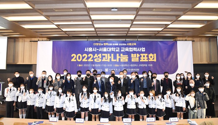 시흥시(시장 임병택)가 지난 8일 2022년 ‘시흥시-서울대 교육협력사업’ 프로그램에 참여한 학생, 학부모, 서울대 교수진과 함께 「성과나눔 발표회」를 개최했다.