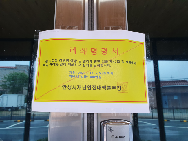 안성시는 지난 15일 코로나19 확진자가 발생한 삼죽면 소재 A교회에 2주간 ‘시설 집합금지 행정명령(일시시설폐쇄)’을 내렸다고 밝혔다.