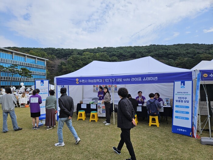 사진/수원시가 ‘찾아가는 1인 가구 새빛 솔로라이프 스테이션’을 열고 1인가구 정책을 홍보하고 있다.(사진제공=수원시)