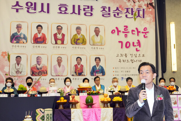이재준 수원특례시장은 칠순 잔치에 참석해 어르신들에게 축하인사를 전했다.