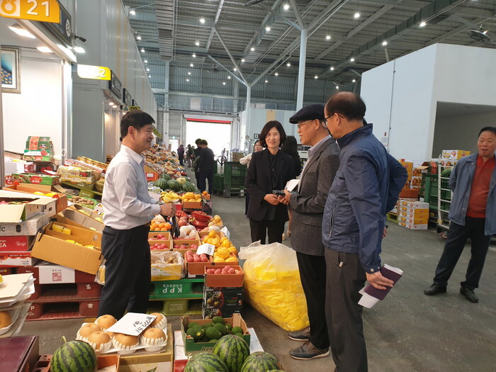 사진/수원시 마을리빙랩팀과 권선1동 주민자치회가 수원농수산물도매시장에서 현장점검을 하고 있다.(사진제공=수원시)
