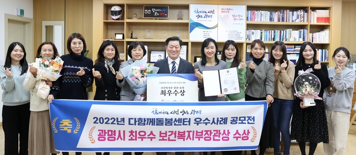 광명시는 ‘세대 갈등을 넘어 화합으로, 제 각기에서 하나로 모아 합치다’를 주제로 공동주택 내 설치장소를 두고 발생한 세대 갈등에서 지역 주민과 끊임없이 소통하여 원만한 합의를 이룬 점, 센터별 보건복지부, 경기도, 광명시로 나뉘던 운영기준을 보건복지부 다함께돌봄센터 사업안내로 통일하여 센터와의 협력을 위해 적극적으로 노력한 점을 인정받았다.