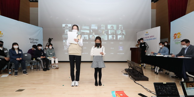 이번 행사는 코로나19 확산예방을 위해 10명의 아동이 대표로 참가하고 나머지 의원들은 온라인으로 참여하는 방식으로 진행됐다.