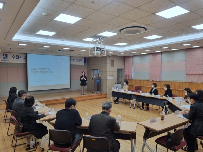 수원시는 29일 수원시장기요양지원센터 백년수홀에서 ‘고령친화도시 모니터단’의 역량강화 교육과 간담회를 열었다.