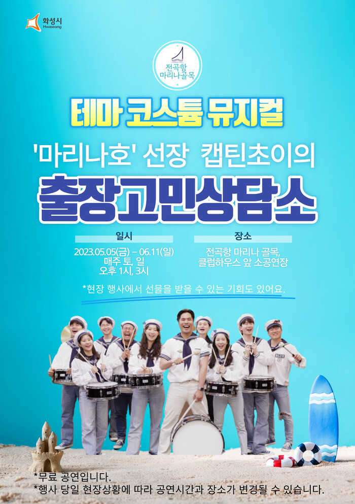 화성시(화성시장 정명근)가 5일 어린이날부터 뱃놀이 축제기간인 오는 6월 11일까지 매주 주말마다 전곡항 마리나에서 야외 뮤지컬 공연을 운영한다.