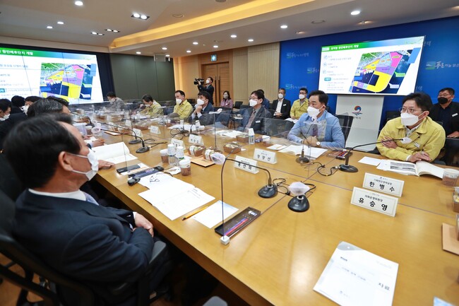 시는 주요 현안 안건으로 ▲평택항 항만배후단지 및 해양안전체험관 추진상황 ▲코로나19 백신 예방접종센터 등 예비비 사용 ▲세계장애인 역도대회 추진현황 ▲탄소중립 추진전략 및 클린평택 프로젝트 추진 ▲알파탄약고 이전 및 지제세교지구 초등학교 설립 정상화 ▲AI관련 살처분 비용 예비비 사용 등을 설명하고 토의했다.