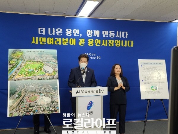 백군기 용인시장은 17일 시청 브리핑룸에서 페이스북·유튜브 라이브 방송으로 이 같은 내용의 용인 센트럴파크 조성 계획을 발표했다.