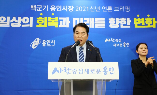 [로컬라이프] 백군기 용인시장은 25일 신년 언론간담회 영상 브리핑을 통해 “코로나19로 무너진 일상을 회복하고 미래를 향한 의미 있는 변화를 선도해 친환경 경제자족도시 실현을 본격화하겠다”는 포부를 밝혔다.