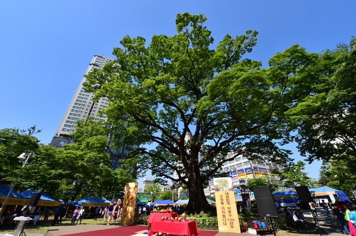 사진/ 2017년 5월, 청명단오제가 열린 단오어린이공원에서 영통 느티나무가 늠름한 모습으로 서 있다.(사진제공=수원시)