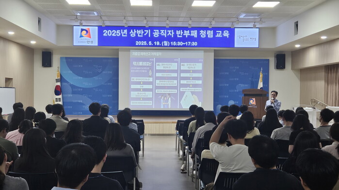 안성시는 5월 19일 시청 대회의실에서 승진 및 신규 임용 공무원 90여 명을 대상으로 ‘2025년 상반기 반부패·청렴교육’을 실시했다.