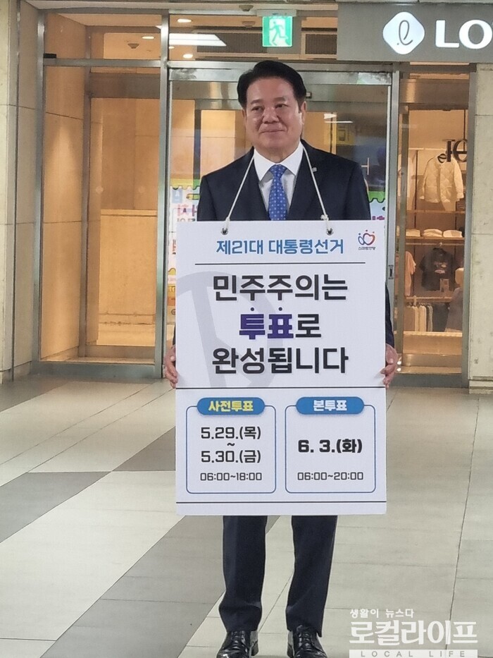 [안양=로컬라이프] 송준형 기자 = 최대호 안양시장이 제21대 대통령 선거 사전투표를 독려했다.
