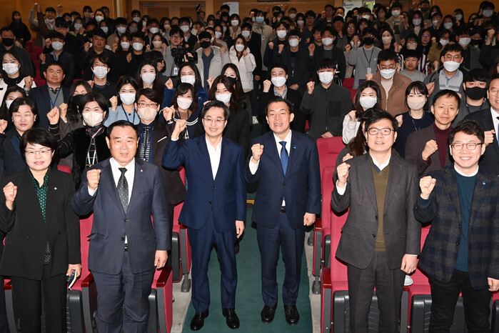 사진/이재준 시장, 김동연 지사가 특강 후 공직자들과 함께하고 있다.(사진제공=수원시)