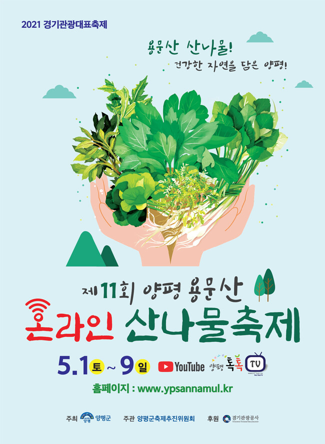 양평군(군수 정동균)에서는 오는 5월 1일부터 9일까지 온·오프라인으로 병행해 열기로 했던 ‘2021년 제11회 양평용문산 산나물 축제’를 전면 온라인 기반으로 개최키로 결정했다.