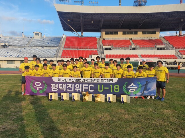 경기평택진위FC U-18(감독 고재효)이 지난 29일 ‘제52회 부산MBC 전국고등학교 축구대회’에서 우승하며 4관왕(경기리그24권역 1위, 금석배 우승, 무학기 우승, 부산MBC 우승)을 달성했다.