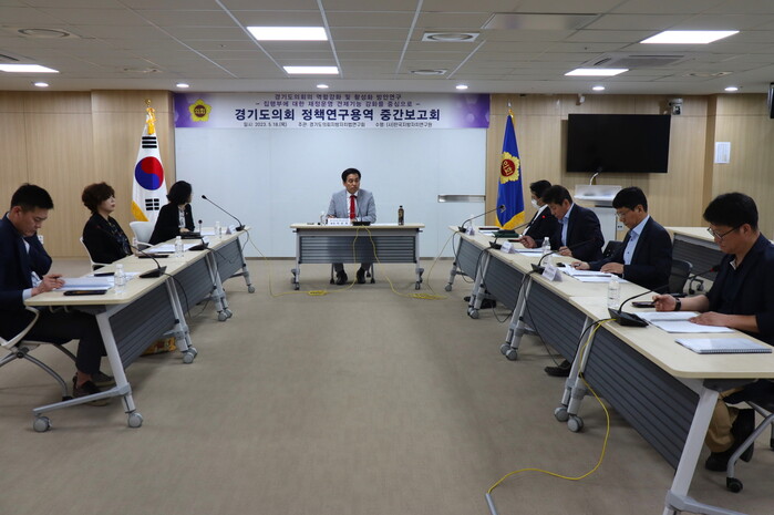 경기도의회 의원연구단체인 ‘경기도의회 지방자치법연구회(회장 이은주)’는 18일(수) 경기도의회 중회의실1에서 ‘경기도의회의 역할강화 및 활성화 방안 연구(집행부에 대한 재정운영 견제기능 강화를 중심으로)’ 용역 중간보고회를 개최하였다.