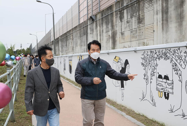 백군기 시장은 이날 자신의 페이스북을 통해 주민세 환원사업을 통해 언동1교 인근 보행로에 멋진 벽화가 조성되어 눈이 즐거운 산책길이 되었다며, 다양한 벽화를 통해 밋밋했던 보행로에 생기를 불어넣고, 탄천을 산책하시는 주민분들께 볼거리를 제공해드릴 수 있게 되었다며 이같이 전했다.