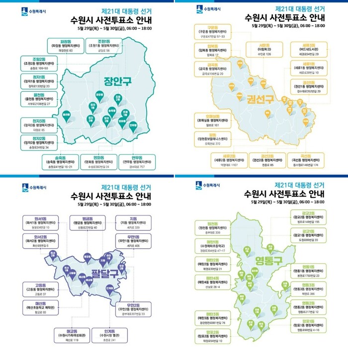 이어 “이번 대선은 본투표일이 화요일인 관계로, 사전투표도 기존과 달리 ‘목요일’과 ‘금요일’에 치러진다는 점을 꼭 기억해 달라”며 “사전투표는 오전 6시부터 오후 6시까지, 사전투표소가 설치된 곳이면 전국 어디서든 하실 수 있다. 4개 구별 사전투표 지도를 만들었으니 참고해 달라. 댓글로 자세한 위치 정보도 올려드린다”고 전했다.