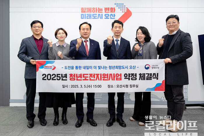 [오산=로컬라이프] 송준형 기자 = 오산시는 5일, 중부지방고용노동청 평택지청과 ‘2025년 청년도전지원사업 약정’을 체결했다.