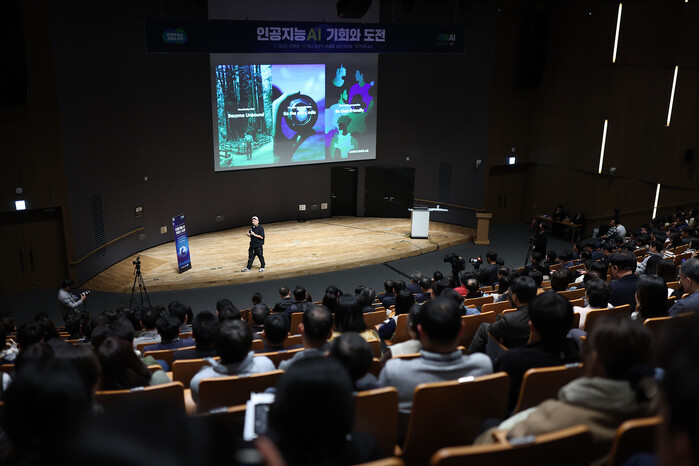 조용민 대표는 ‘인공지능(AI) 기술이 세상에 가져올 변화’를 주제로 강연을 진행했다. 조 대표는 문화, 경제, 사회 등 다양한 분야에서 인공지능 기술이 활용된 사례를 제시하면서 인공지능 기술이 가져올 파급력을 강조했다.