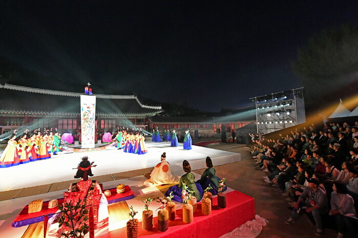 사진/ 지난 2019년 10월 제56회 수원화성문화제 당시 혜경궁 홍씨의 회갑연을 소재로 한 진찬연 공연 장면.(사진제공=수원시)