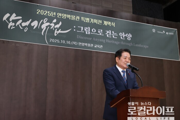 | ▲ 최대호 안양시장이 ‘2025년 안양박물관 특별기획전 개막식’에 참석해 축사를 하고 있다. (사진출처=최대호 페이스북) |