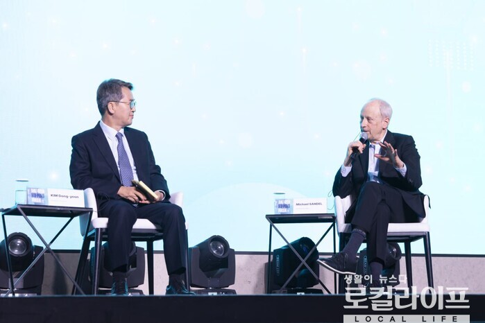 이날 포럼에서 김동연 경기도지사는 미이클 샌델 교수와 만나 기조대담을 가졌다.