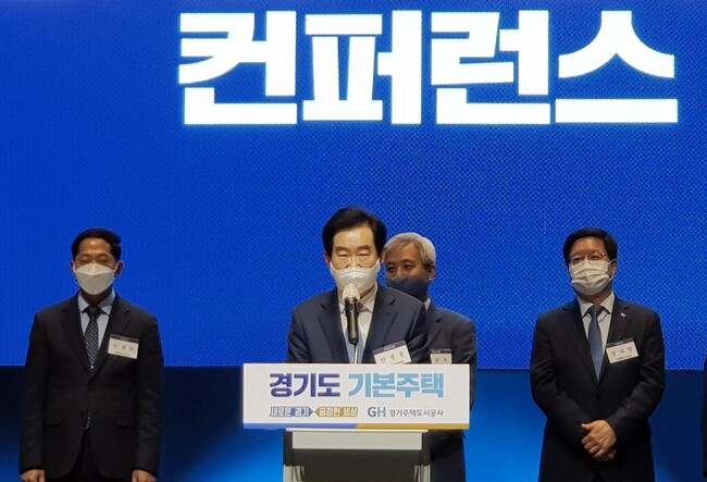 경기도가 제안한‘경기도 기본주택’이란 소득.자산으로 입주자격을 제한하지 않고, 무주택자라면 역세권 등 좋은 위치의 아파트에서 시세보다 저렴한 임대료를 내고 30년 이상 장기 거주가 가능한 보편적 주거서비스 정책을 의미한다.