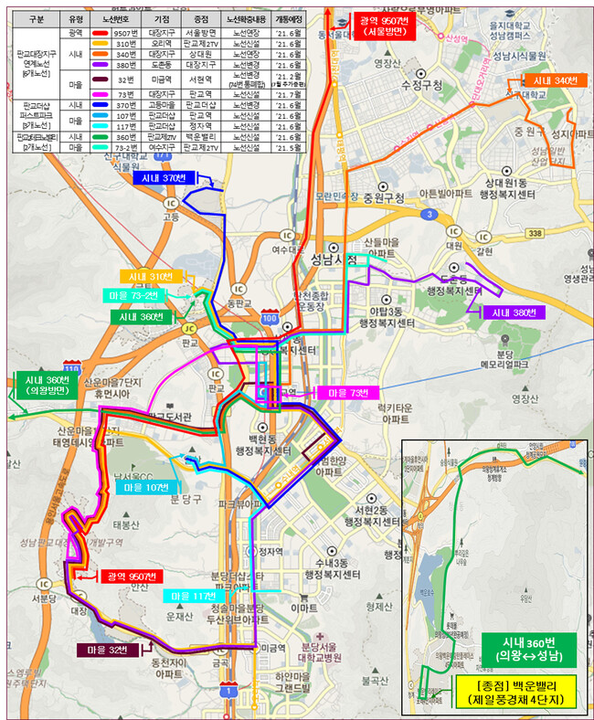 사진/대중교통과-성남시 판교 일대 11개 버스노선 확충 계획도(성남시 제공)