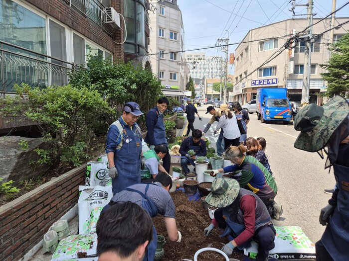 사진/권선1동에 화분정원 시범거리를 조성하고 있다.(사진제공=수원시)