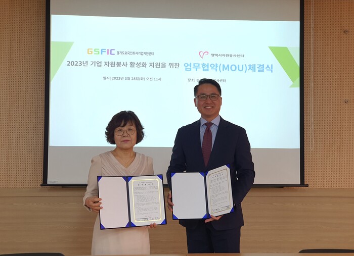 평택시자원봉사센터(센터장 손영희)와 ‘경기도외국인투자기업지원센터(센터장 김용문)’는 지난 28일 평택시자원봉사센터 교육장에서 기업 자원봉사 활성화를 위한 업무협약을 체결했다.