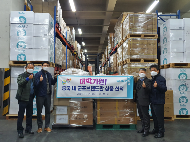 이를 위해 군포시 복합물류센터에서 화장품과 건강식품 등 군포시 10개 기업 51개 제품들에 대한 첫번째 출하가 이뤄졌다.