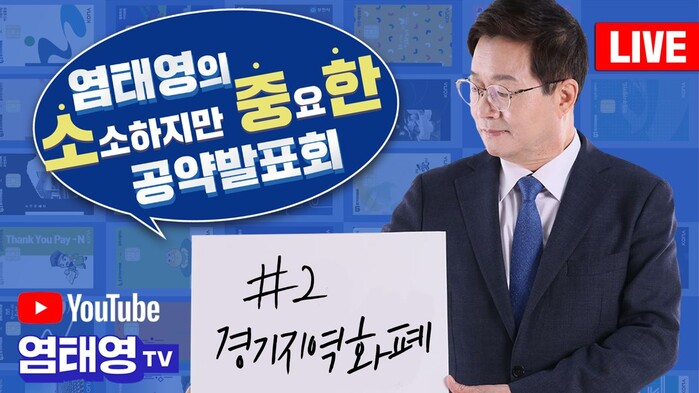 염태영 경기도지사 예비후보는 29일 오전 10시 유튜브 라이브를 통해 경기지역화폐의 인센티브 한도를 지역에 따라 최대 20만원까지 2배로 확대하는 내용을 담은 공약 설명회를 가졌다.
