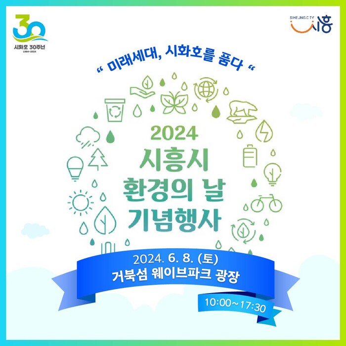 ‘2024 시흥시 환경의 날 기념행사‘라며, 미래에서 잠시 빌려온 환경! 미래세대에게 다시 돌려줄 때까지 환경을 지키고 아끼는 방법을 배울 수 있는 하루! 행사에 참석하여 뜻깊은 날, 뜻깊은 자리를 빛내주시라고 전했다.