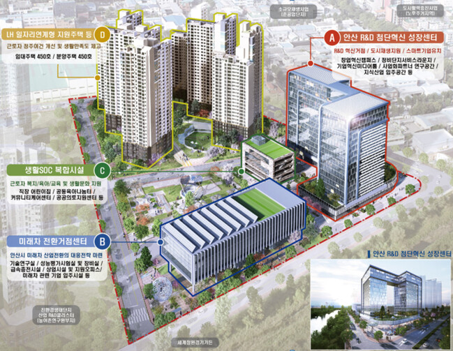 주요 사업으로 안산 R&D 첨단혁신 성장센터 미래차 전환거점센터 생활SOC 복합시설 LH 일자리연계형 지원주택(900호) 등이 추진된다.